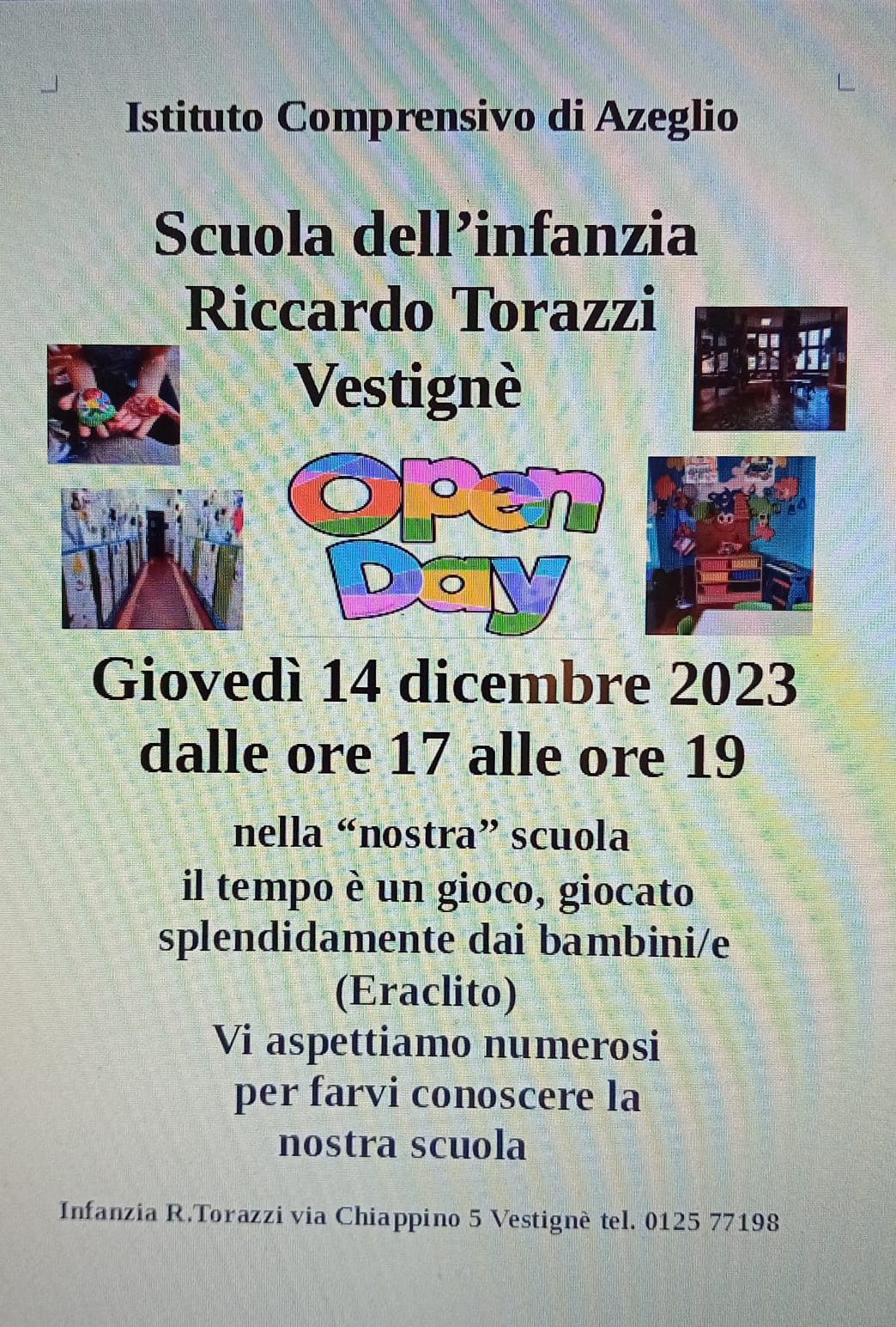 Open day per la scuola dell'infanzia, primaria e di scuola secondaria di primo grado (medie) di Vestignè